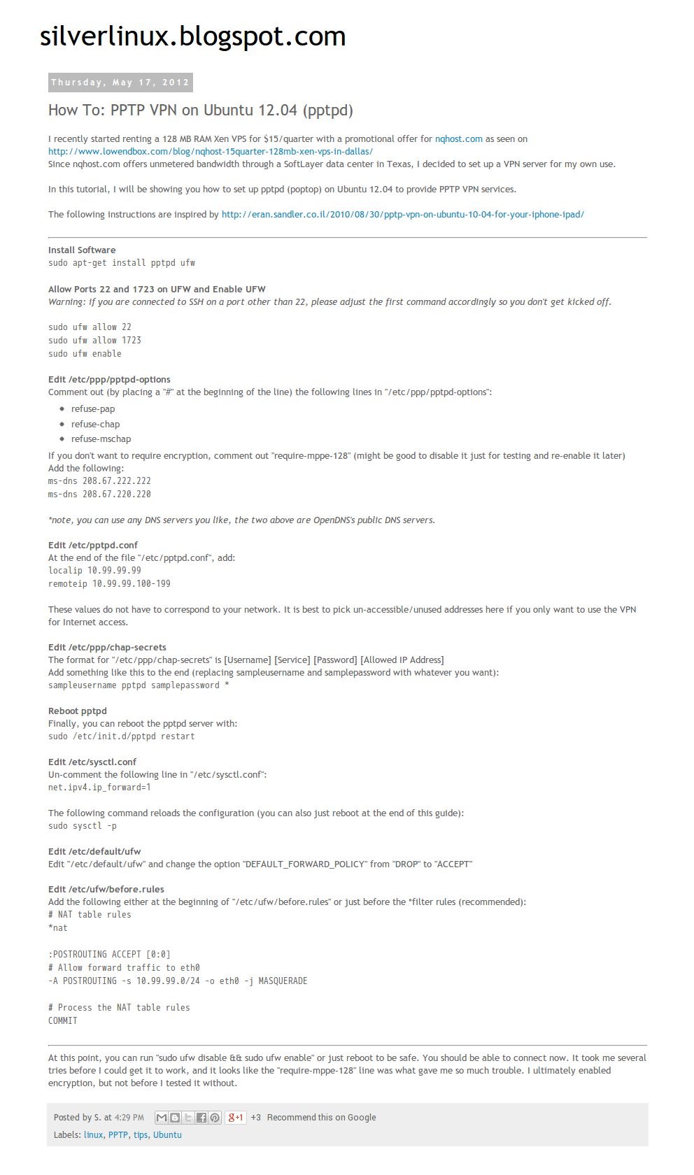 , http://silverlinux.blogspot.com/2012/05/how-to-pptp-vpn-on-ubuntu-1204