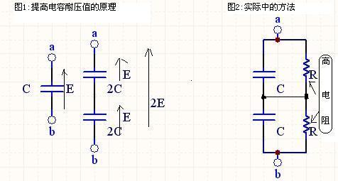 当处理某种程度以上的电压时,电容器的耐压值就成为问题,如果能够买到耐压值高的电容则是没有问题的,如果买不到,或者因价格问题等因素,则必须考虑其它的方法。